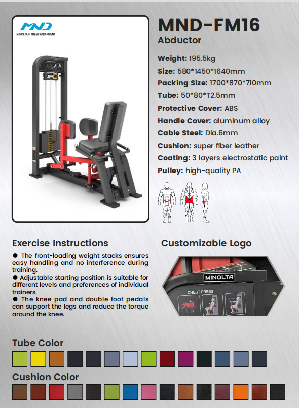 حدد عضلات المؤخرة والوركين الخارجية. يعزل MND-FM16 عضلات الورك المبعدة، وفي المقام الأول عضلات الألوية الوسطى، وهي ضرورية لإنشاء عضلات الألوية المستديرة، وتحسين ثبات الورك، وتعزيز جماليات الجزء السفلي من الجسم ووظيفته.