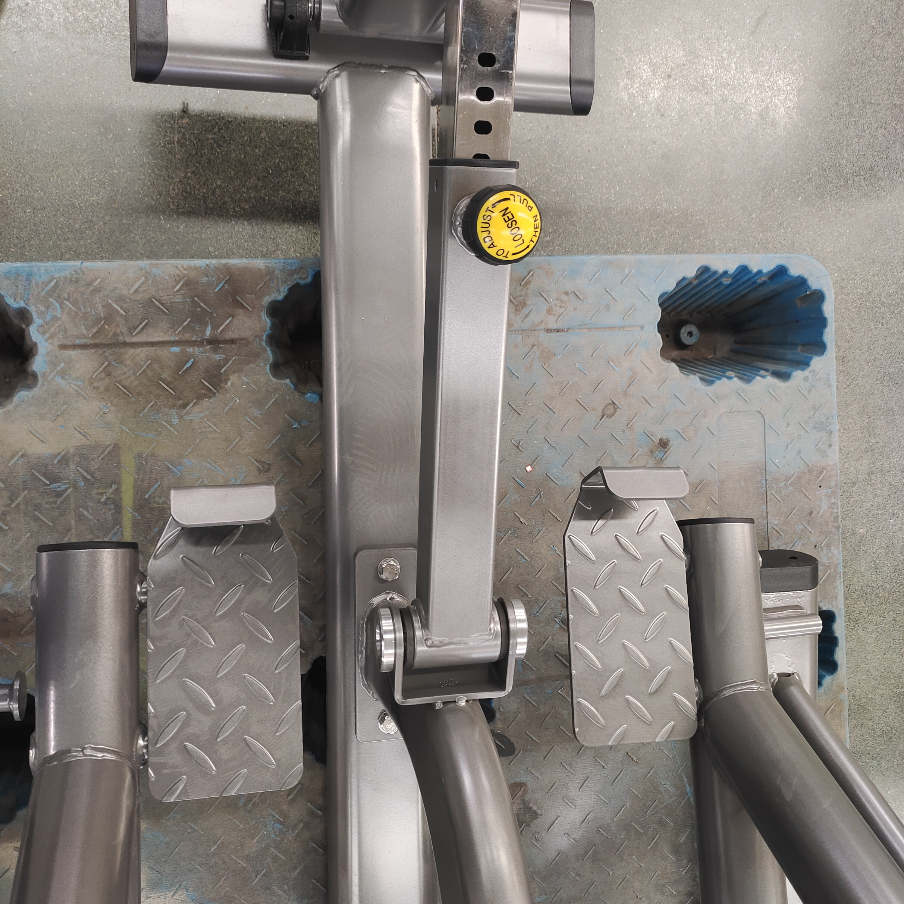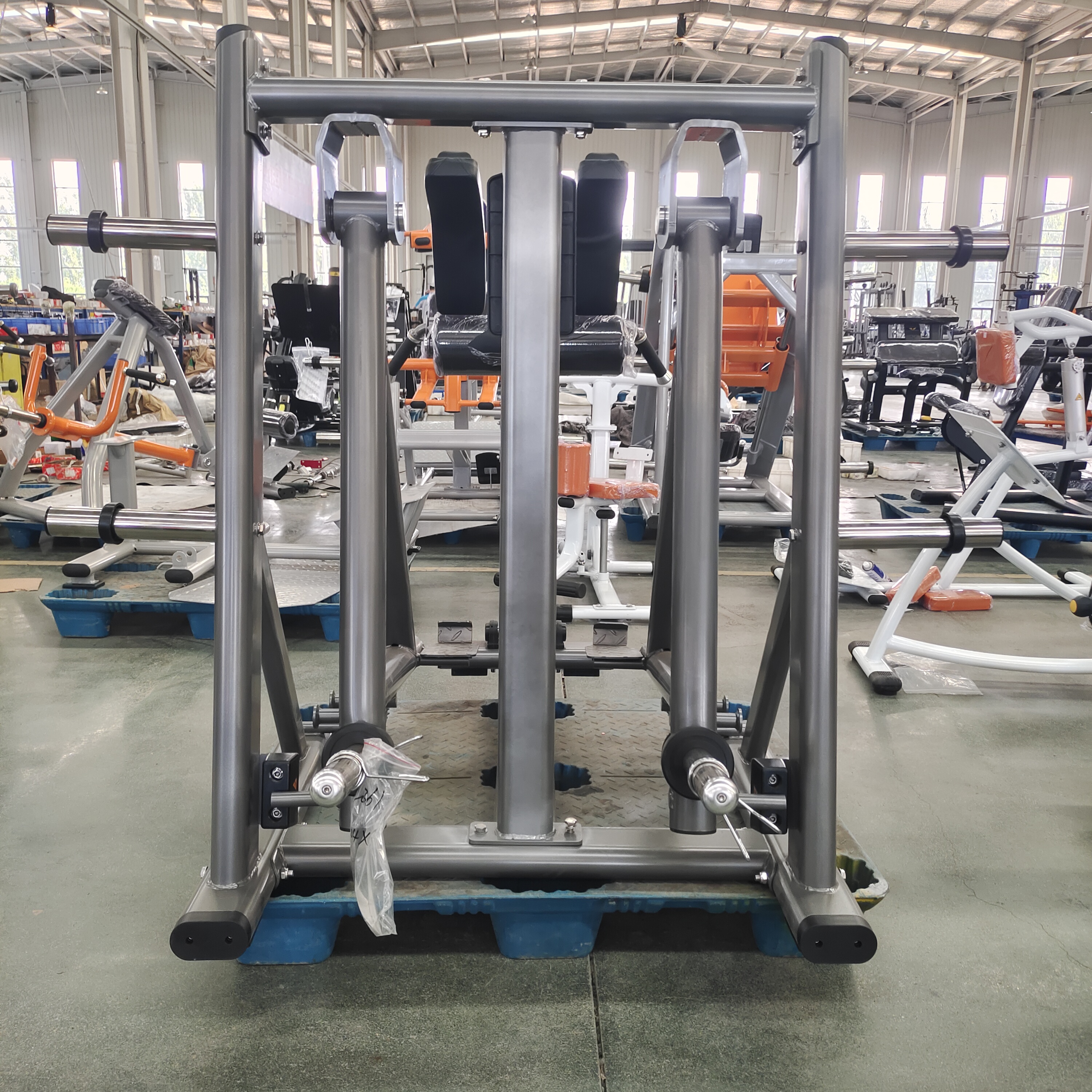 هيكل عالي التحمل: بوزن صافي كبير يبلغ 168 كجم ، فإن إطار الماكينة مصنوع من أنبوب بيضاوي مسطح (120 × 60 × 3 مم؛ 100 × 50 × 3 مم) وأنبوب دائري (φ76 × 3 مم) ، يضمن ثباتًا لا يتزعزع أثناء دفعات وتمديدات الورك الثقيلة.