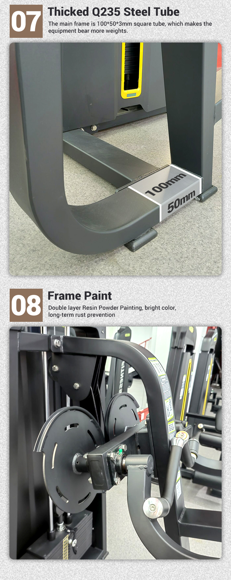 【ثبات شديد التحمل】: مع وزن صافي يبلغ 223 كجم، توفر الماكينة قاعدة ثابتة للتدريب المكثف، مما يقضي على أي تأثير أو عدم استقرار.