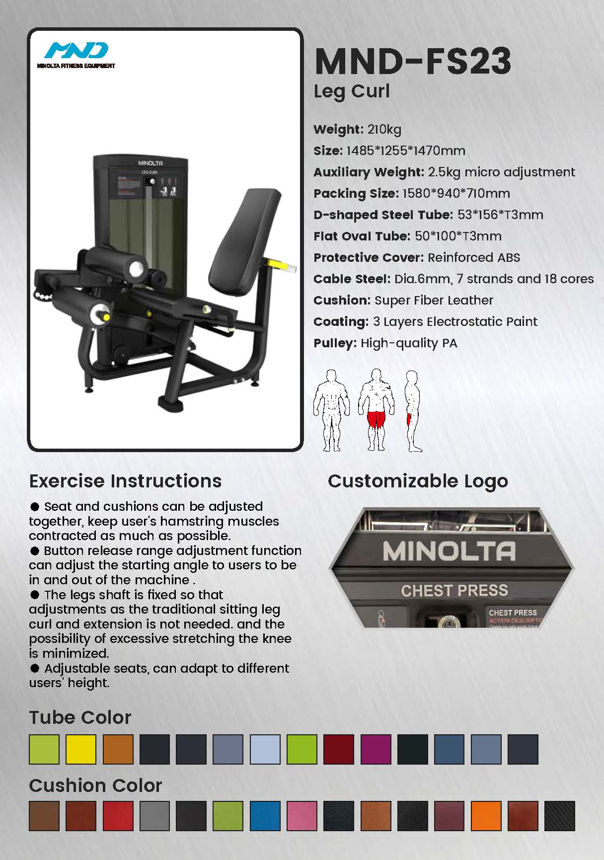 تعزيز المفصلة الحاسمة. يوفر FS23 عزلًا صارمًا لأوتار الركبة من خلال ثني الركبة أثناء الجلوس. هذا العمل المستهدف غير قابل للتفاوض لتحقيق التوازن بين عضلات الفخذ القوية، وتثبيت مفصل الركبة، ومنع الإصابة، وتطوير تعريف الفخذ الخلفي الذي يكمل نمو الساق الرياضية.
