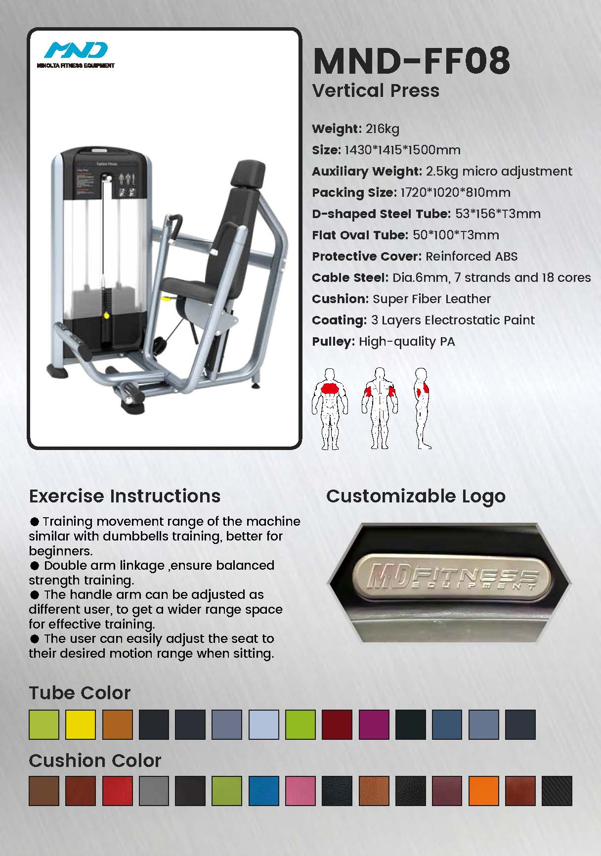 باعتبارنا مصنع تصنيع المعدات الأصلية وتصنيع التصميم الشخصي (OEM) الخاص بك والذي يتمتع بخبرة تزيد عن 15 عامًا ، فإننا نزود صالة الألعاب الرياضية الخاصة بك بآلات موثوقة تركز على المستخدم. يجسد FF08 التزامنا بالمتانة التجارية والتصميم المبتكر . استفد من خيارات الألوان التي تزيد عن 40 لونًا والتخطيط المجاني لتخطيط صالة الألعاب الرياضية لخلق بيئة تدريب مثالية.