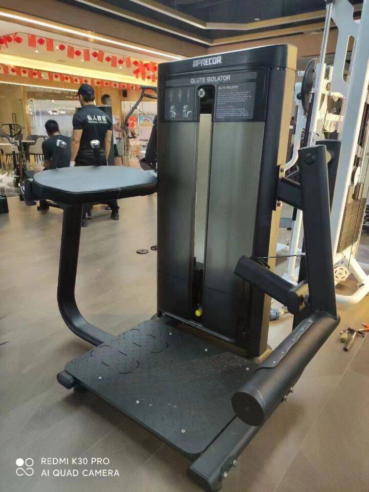 【محاذاة محور الورك التشريحية 】 : يتم محاذاة المحور المحوري للجهاز مع المدور الأكبر للمستخدم (مفصل الورك). تضمن هذه المحاذاة أن لوحة المقاومة تطبق القوة مباشرة على الجزء الخلفي من عظم الفخذ، مما يخلق ذراع رافعة مثالية للعضلات الألوية ويقلل من قوى القص على الركبة وأسفل الظهر.