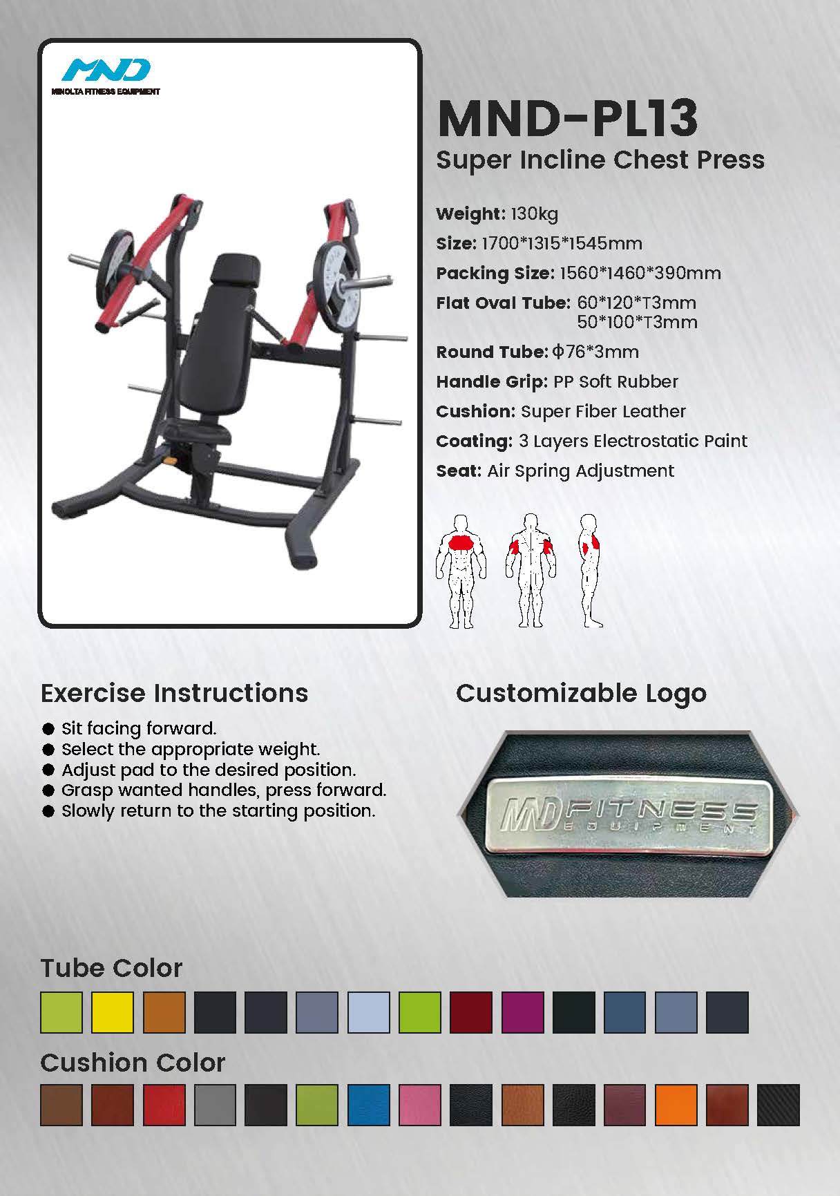 استهدف الجزء العلوي من الصدر الذي غالبًا ما يتم إهماله بدقة غير مسبوقة. يتميز MND-PL13 بزاوية ميل قوية تبلغ 60 درجة توفر أقصى قدر من التنشيط للرأس الترقوي، مما يخلق مظهر الصدر الكامل والمتوازن المرغوب فيه للغاية.