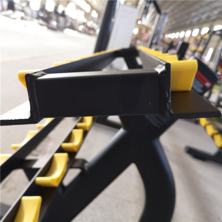تم تصميم هذا الرف لصالات الألعاب الرياضية التجارية التي تحتاج إلى تخزين مجموعة واسعة من الدمبل (على سبيل المثال، 5-100 رطل) دون إضاعة مساحة تدريب قيمة.