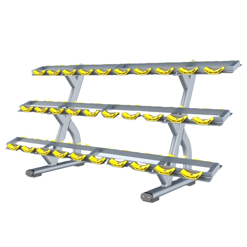 تخزين آمن ويمكن الوصول إليه: تتميز كل طبقة بنفس تصميم صينية الهلال الموثوقة ، مما يضمن تثبيت كل دمبل بشكل آمن. يحافظ التباعد المدروس على سهولة الوصول إلى الأوزان على جميع المستويات الثلاثة.