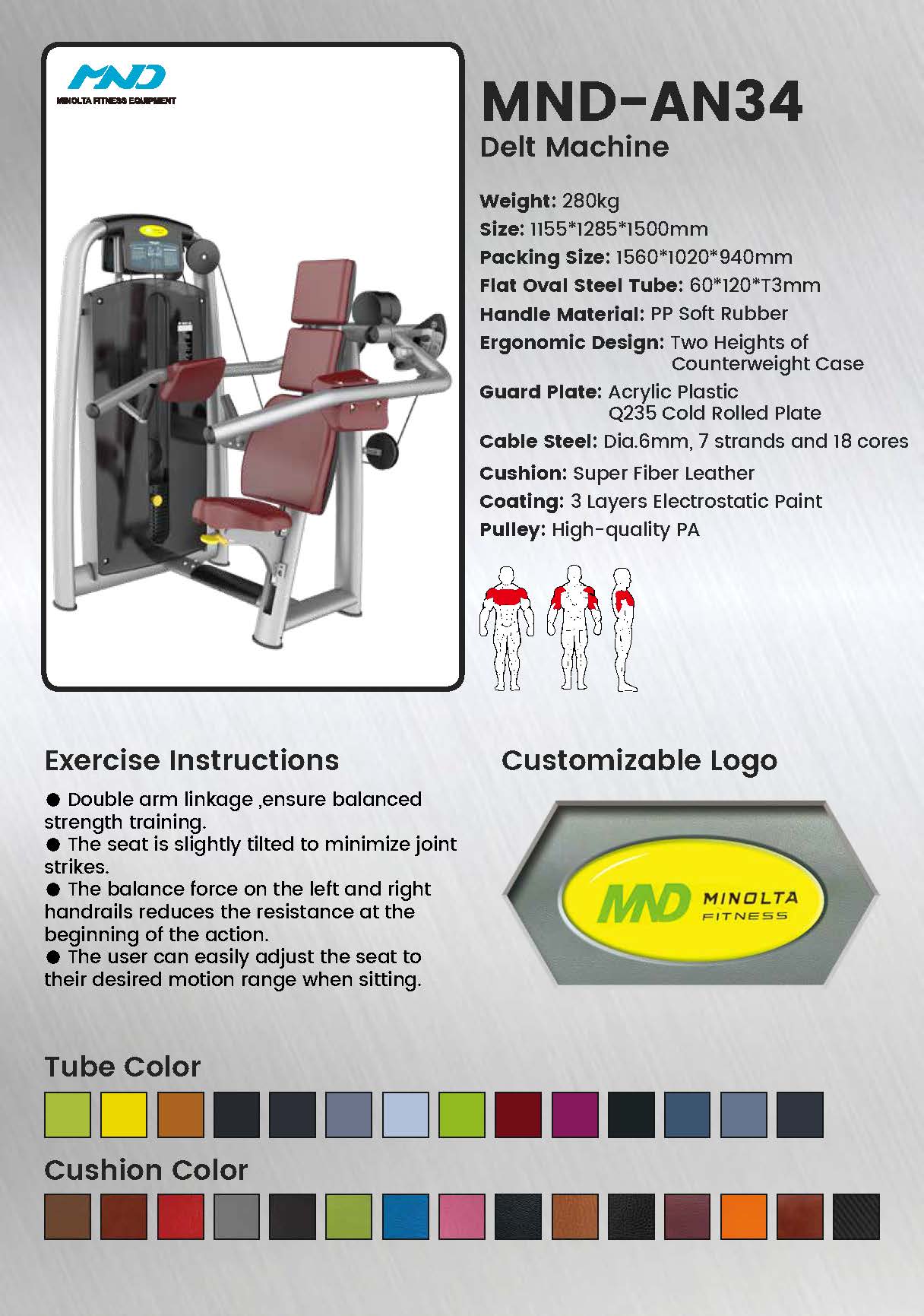 تخصص في تطوير الكتفين باستخدام مسار العزل الدقيق لجهاز AN34 الذي يستهدف الرؤوس الدالية الثلاثة. توفر المقاعد المريحة ووسادات الذراع القابلة للتعديل محاذاة مثالية لمشاركة عضلات الكتف بشكل مثالي.